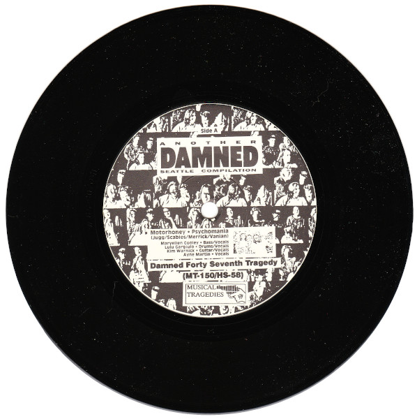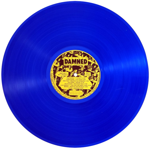 This was a fun compilation. As you might have guessed by the title, it was a bunch of Seattle bands covering The Damned. Most (all?) tracks were exclusive to this compilation. CD versions were released in the U.S., Europe, and Japan. The vinyl was released in the U.S. and Europe, and came as an LP with a 7". The 7" was on black vinyl. There were a whole bunch of variants of the LP: it came in blue, green, red, yellow, yellow marble, and orange marble. Some colors are more common than others. I have not bothered to track all of them down. People tend to overprice them when listing them for sale, so they don't sell very often. All of them are worth about the same amount. Also, a disproportionate quantity seem to be in Europe.